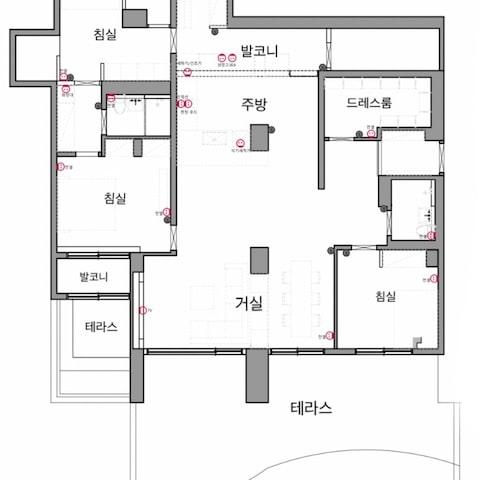 건축 도면은 아직 공사 기획 단계라면 공간 설계나 대략적인 공간 레이아웃이 잡혀있지 않겠지요? 가장 기본적인 설계로 공간을 구성한 후 투시도 작업을 진행하는 것이 일반적인 진행 프로세스입니다!이번 프로젝트는 아파트 건축 도면을 송부받은 후 클라이언트 분들의 직업 특성과 주거 스타일을 고려하여 모든 공간의 구성을 변경하였습니다:) 건축 도면은 벽체나 기둥 중심선에 따라 작성되었기 때문에 내경 치수를 기준으로 작성되는 인테리어 도면으로 재작성하셔야 합니다! 투시도 하이엔드 인테리어